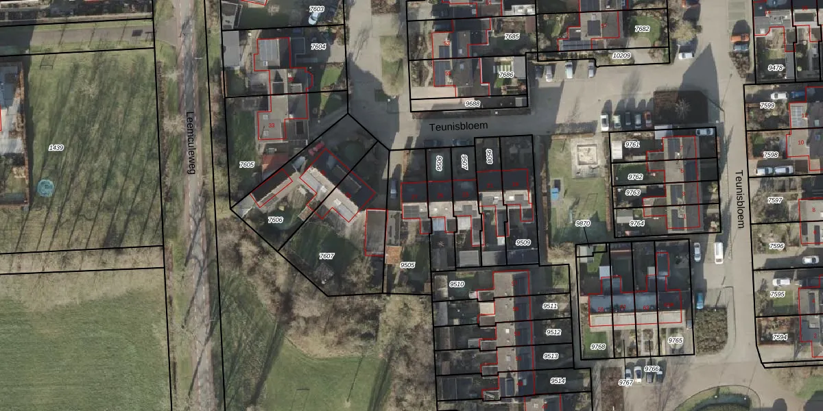 Het perceel waarop Teunisbloem 27 staat heeft een oppervlakte van 369 m². Dit is een groot perceel. De perceeloppervlakte wordt geregistreerd door het Kadaster. Gedetailleerde informatie over de maten van dit perceel kunt u vinden in het rapport Kadastrale kaart met maatvoering van Teunisbloem 27.