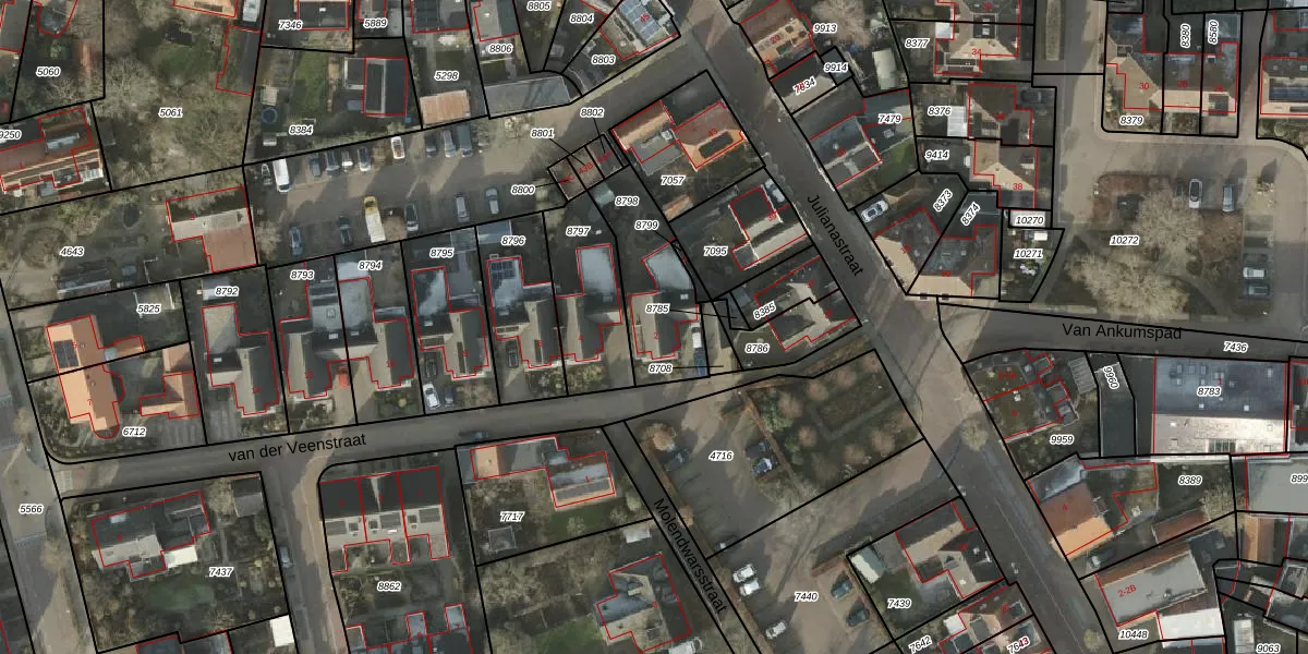 Het perceel waarop van der Veenstraat 2 staat heeft een oppervlakte van 325 m². Dit is een groot perceel. De perceeloppervlakte wordt geregistreerd door het Kadaster. Gedetailleerde informatie over de maten van dit perceel kunt u vinden in het rapport Kadastrale kaart met maatvoering van van der Veenstraat 2.