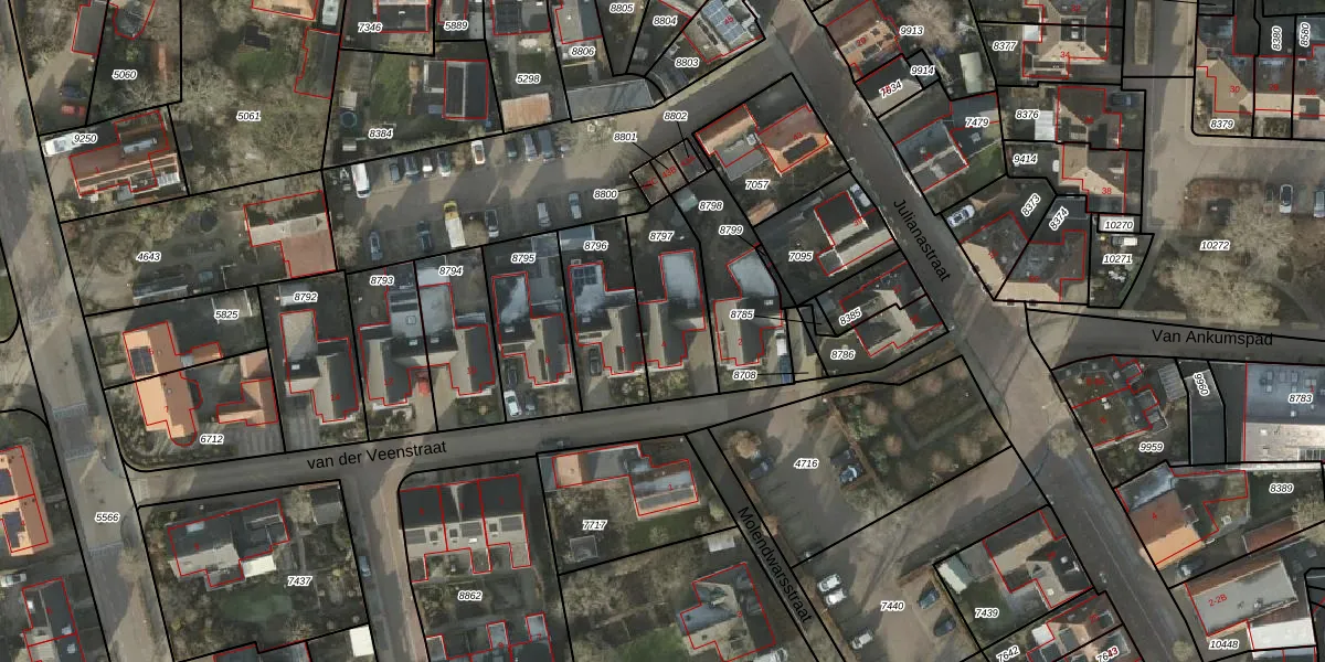 Het perceel waarop van der Veenstraat 4 staat heeft een oppervlakte van 301 m². Dit is een groot perceel. De perceeloppervlakte wordt geregistreerd door het Kadaster. Gedetailleerde informatie over de maten van dit perceel kunt u vinden in het rapport Kadastrale kaart met maatvoering van van der Veenstraat 4.