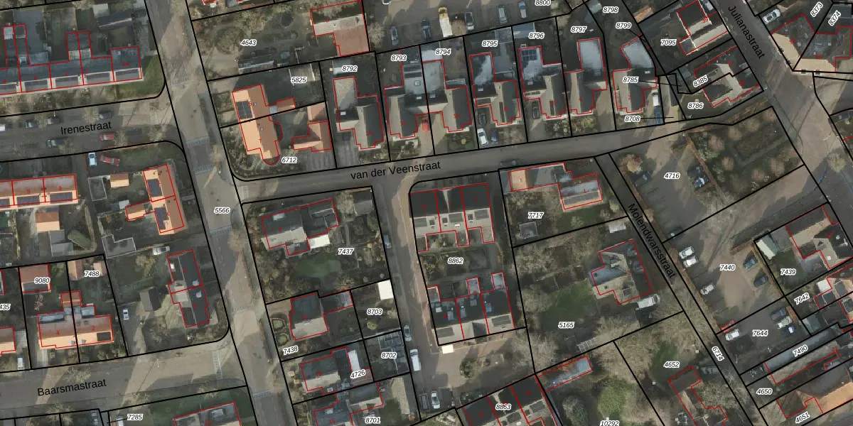 Het perceel waarop van der Veenstraat 5 staat heeft een oppervlakte van 818 m². Dit is een groot perceel. De perceeloppervlakte wordt geregistreerd door het Kadaster. Gedetailleerde informatie over de maten van dit perceel kunt u vinden in het rapport Kadastrale kaart met maatvoering van van der Veenstraat 5.