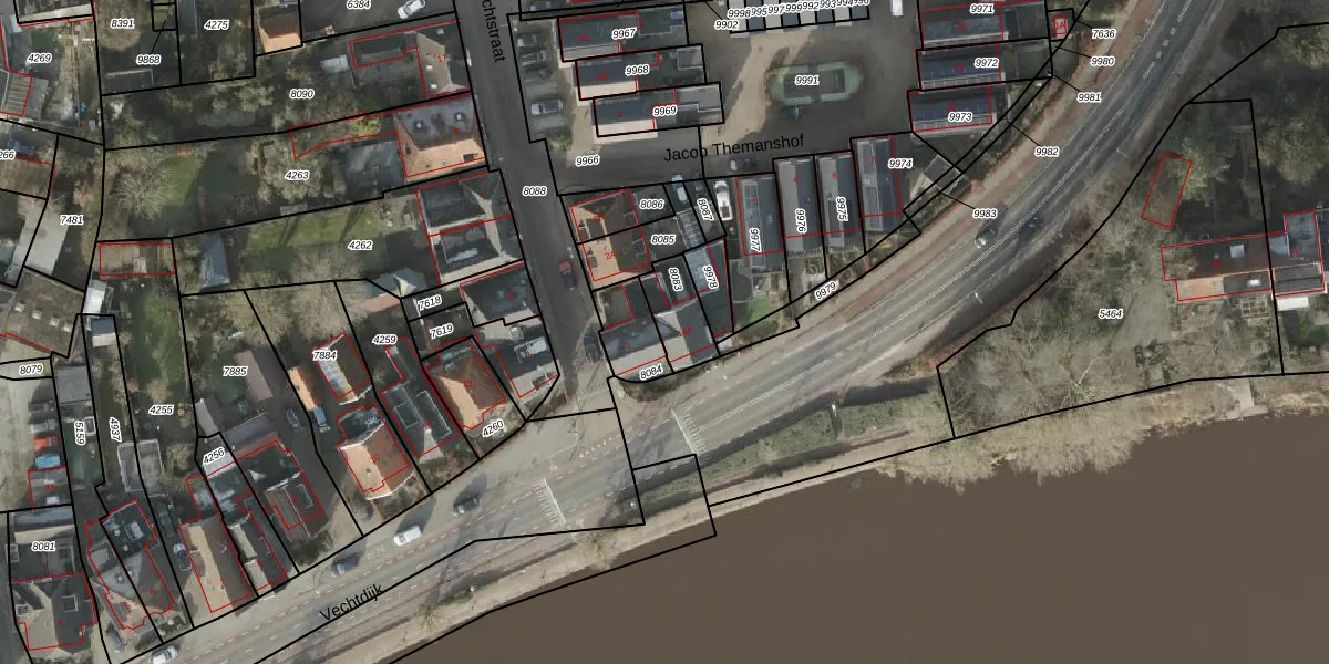 Het perceel waarop Vechtdijk 14-A staat heeft een oppervlakte van 121 m². Dit is een middelgroot perceel. De perceeloppervlakte wordt geregistreerd door het Kadaster. Gedetailleerde informatie over de maten van dit perceel kunt u vinden in het rapport Kadastrale kaart met maatvoering van Vechtdijk 14-A.