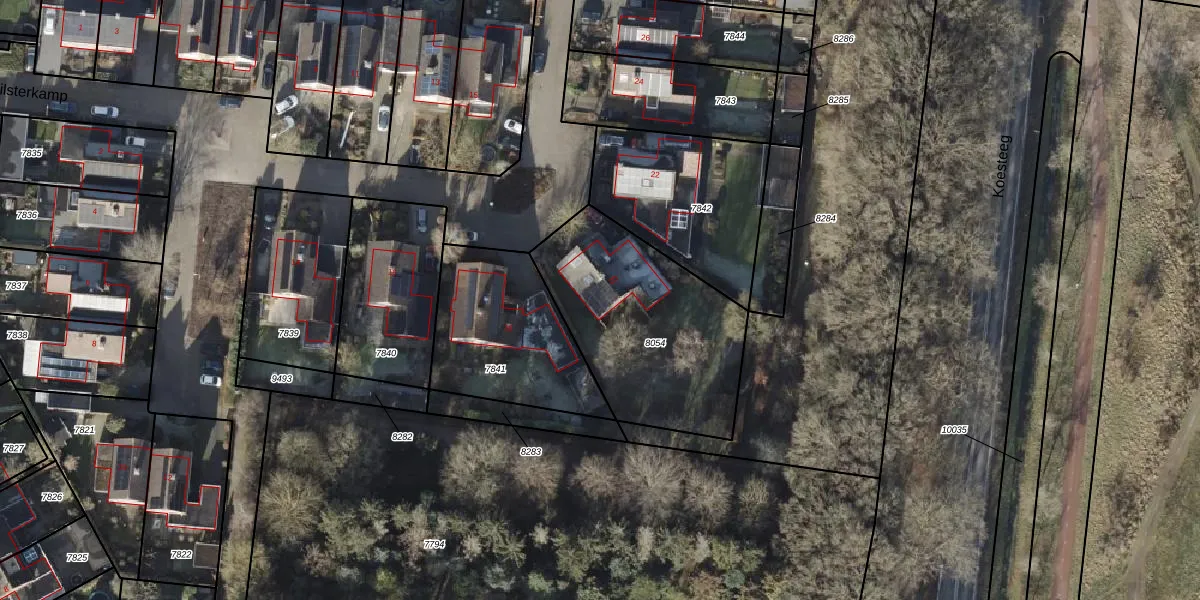 Het perceel waarop Vilsterkamp 20 staat heeft een oppervlakte van 848 m². Dit is een groot perceel. De perceeloppervlakte wordt geregistreerd door het Kadaster. Gedetailleerde informatie over de maten van dit perceel kunt u vinden in het rapport Kadastrale kaart met maatvoering van Vilsterkamp 20.