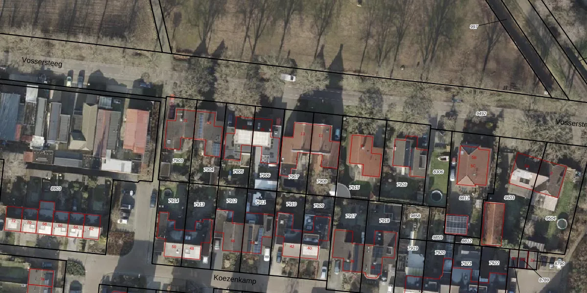 Gebruik de zoekbalk of klik op een perceel voor informatie over de adressen binnen dit perceel.