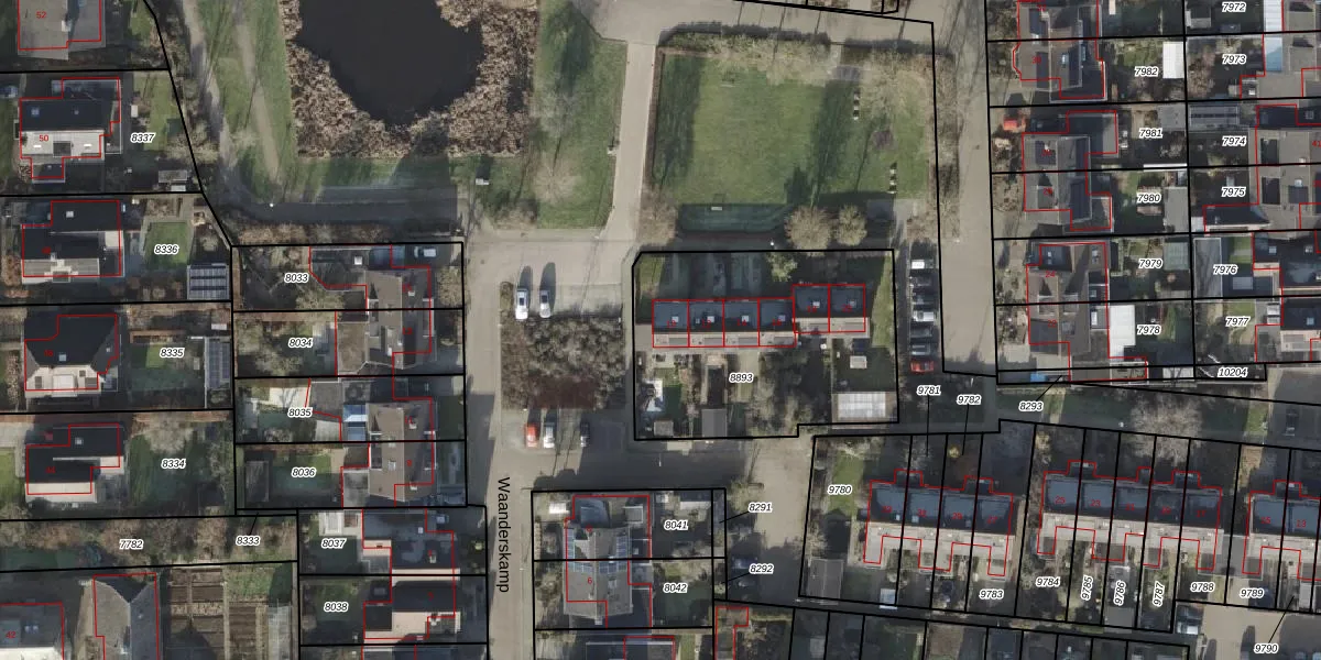 Het perceel waarop Waanderskamp 10 staat heeft een oppervlakte van 1092 m². Dit is een zeer groot perceel. De perceeloppervlakte wordt geregistreerd door het Kadaster. Gedetailleerde informatie over de maten van dit perceel kunt u vinden in het rapport Kadastrale kaart met maatvoering van Waanderskamp 10.