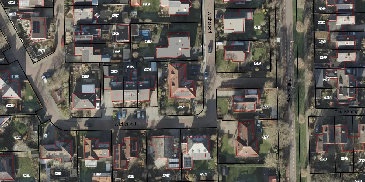 Wicherserf 10 is gelegen op kadastraal perceel DSN01K9020. Deze kadastrale aanduiding is uniek en wordt gebruikt door het Kadaster om eigendomsrechten en andere zakelijke rechten vast te leggen. Het perceel maakt onderdeel uit van de kadastrale gemeente Dalfsen.
