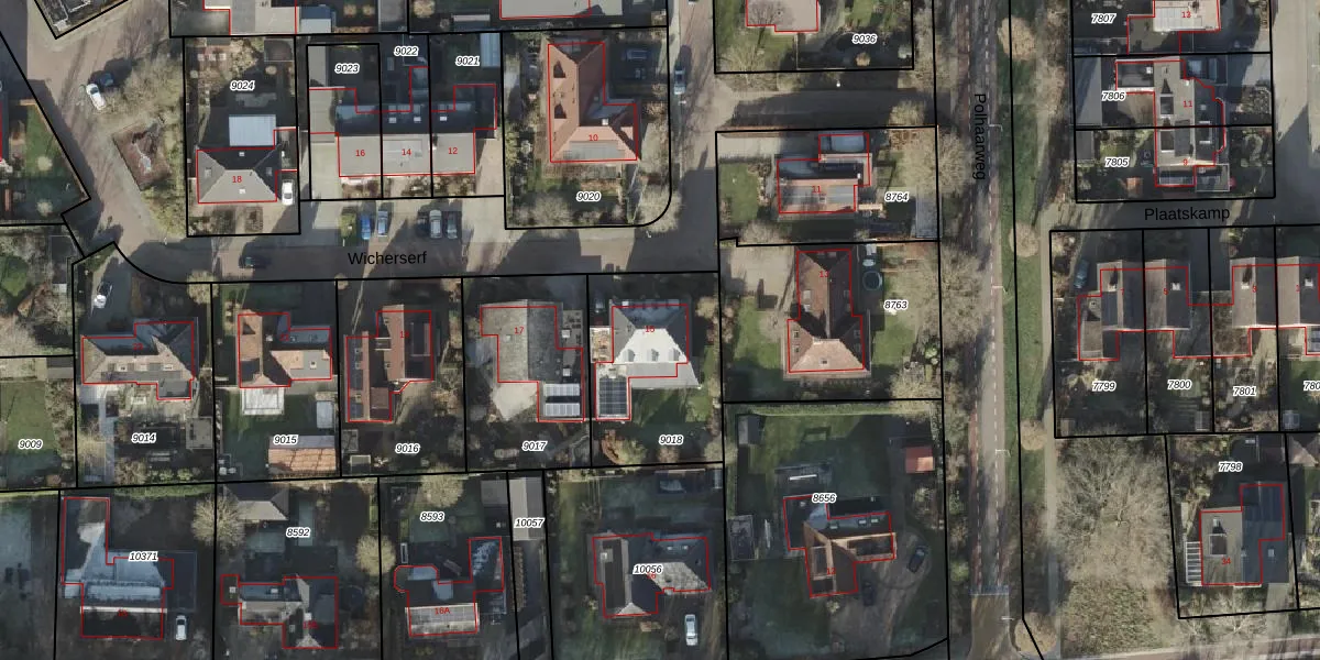 Het perceel waarop Wicherserf 15 staat heeft een oppervlakte van 584 m². Dit is een groot perceel. De perceeloppervlakte wordt geregistreerd door het Kadaster. Gedetailleerde informatie over de maten van dit perceel kunt u vinden in het rapport Kadastrale kaart met maatvoering van Wicherserf 15.
