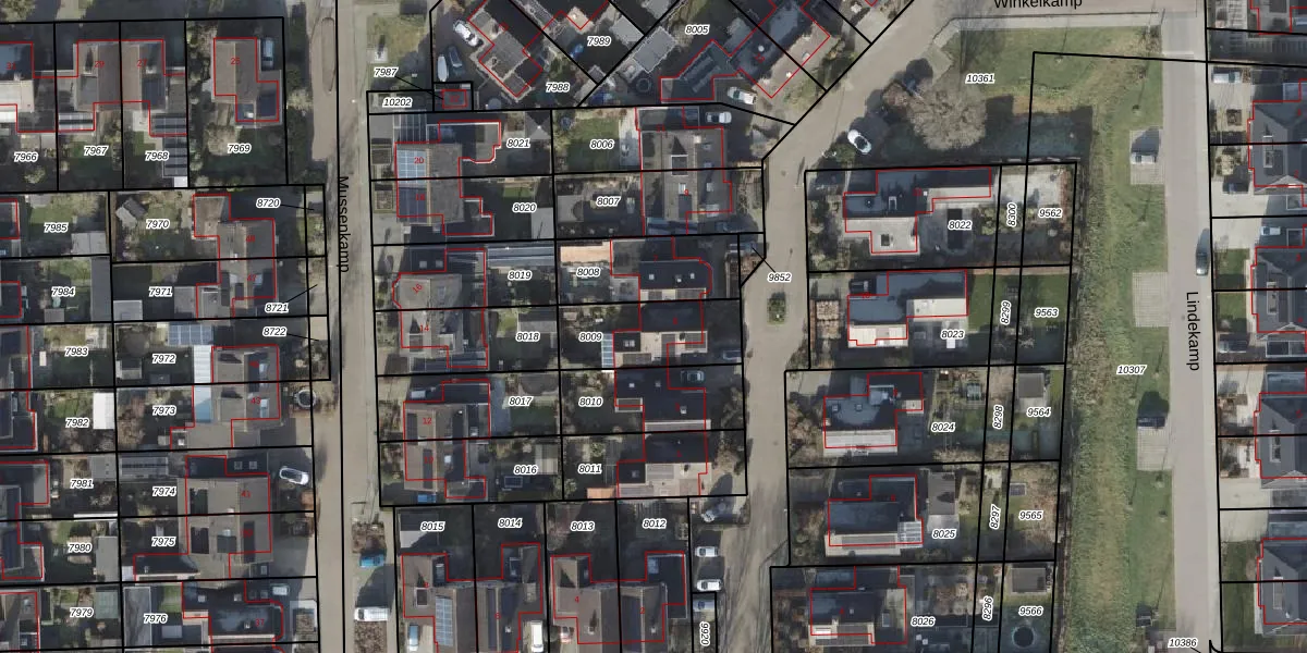 Gebruik de zoekbalk of klik op een perceel voor informatie over de adressen binnen dit perceel.