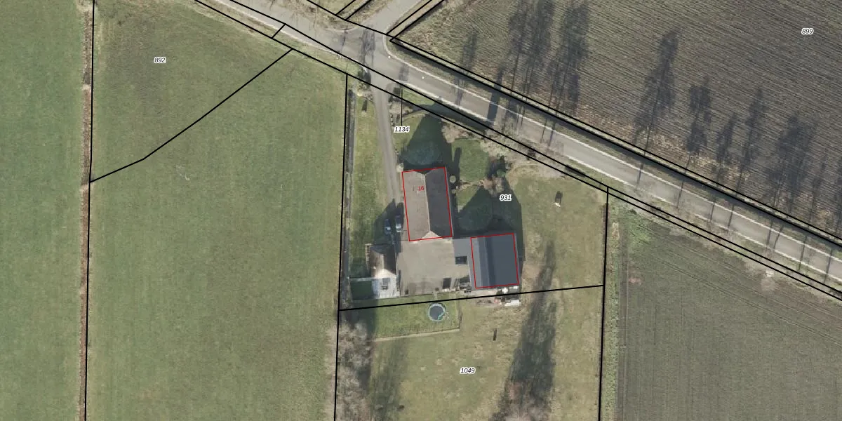 Het perceel waarop Dalmsholterdijk 16 staat heeft een oppervlakte van 2450 m². Dit is een zeer groot perceel. De perceeloppervlakte wordt geregistreerd door het Kadaster. Gedetailleerde informatie over de maten van dit perceel kunt u vinden in het rapport Kadastrale kaart met maatvoering van Dalmsholterdijk 16.