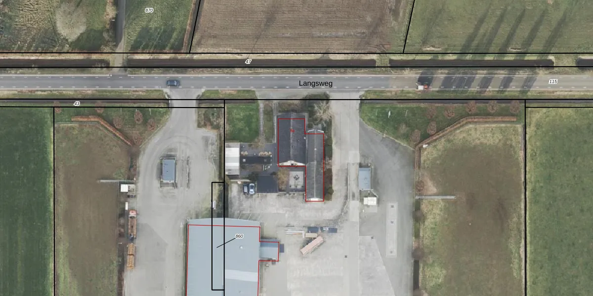 Het perceel waarop Langsweg 8-a staat heeft een oppervlakte van 2,4 ha. Dit is een zeer groot perceel. De perceeloppervlakte wordt geregistreerd door het Kadaster. Gedetailleerde informatie over de maten van dit perceel kunt u vinden in het rapport Kadastrale kaart met maatvoering van Langsweg 8-a.