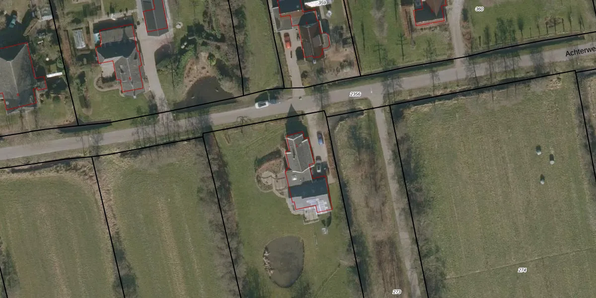Het perceel waarop Achterwei 1 staat heeft een oppervlakte van 5420 m². Dit is een zeer groot perceel. De perceeloppervlakte wordt geregistreerd door het Kadaster. Gedetailleerde informatie over de maten van dit perceel kunt u vinden in het rapport Kadastrale kaart met maatvoering van Achterwei 1.