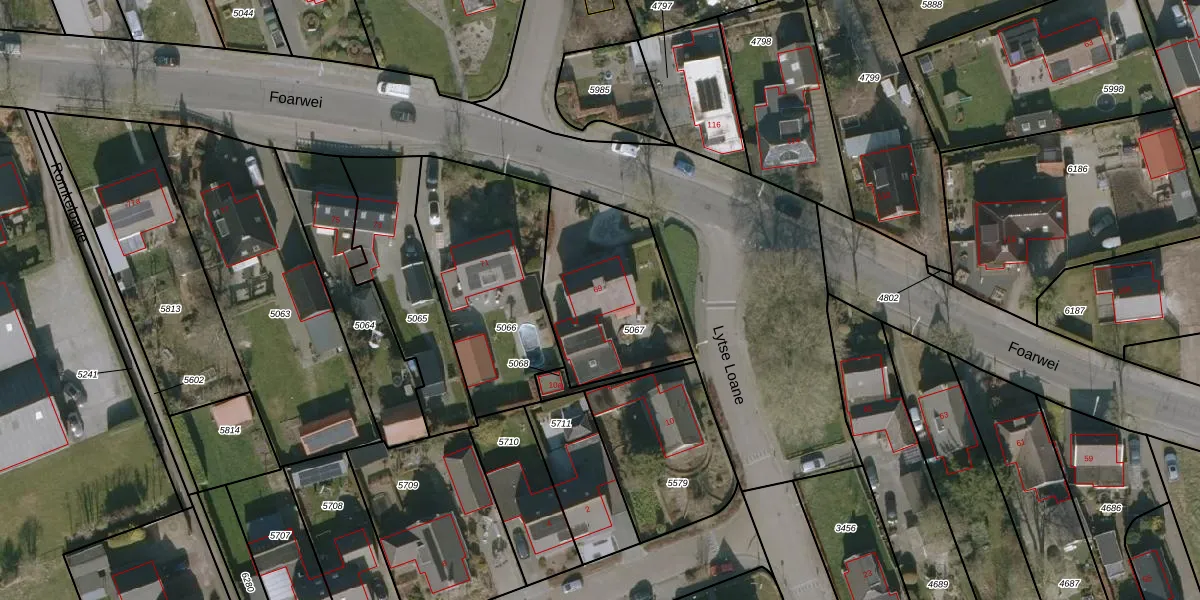 Het perceel waarop Foarwei 69 staat heeft een oppervlakte van 570 m². Dit is een groot perceel. De perceeloppervlakte wordt geregistreerd door het Kadaster. Gedetailleerde informatie over de maten van dit perceel kunt u vinden in het rapport Kadastrale kaart met maatvoering van Foarwei 69.