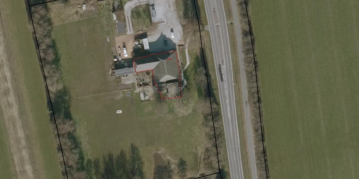 Het perceel waarop Haadwei 4 staat heeft een oppervlakte van 9925 m². Dit is een zeer groot perceel. De perceeloppervlakte wordt geregistreerd door het Kadaster. Gedetailleerde informatie over de maten van dit perceel kunt u vinden in het rapport Kadastrale kaart met maatvoering van Haadwei 4.