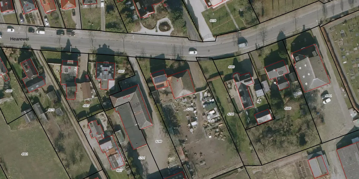 Het perceel waarop Hearewei 9 staat heeft een oppervlakte van 2229 m². Dit is een zeer groot perceel. De perceeloppervlakte wordt geregistreerd door het Kadaster. Gedetailleerde informatie over de maten van dit perceel kunt u vinden in het rapport Kadastrale kaart met maatvoering van Hearewei 9.