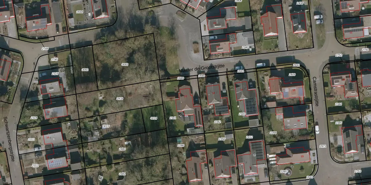 Gebruik de zoekbalk of klik op een perceel voor informatie over de adressen binnen dit perceel.
