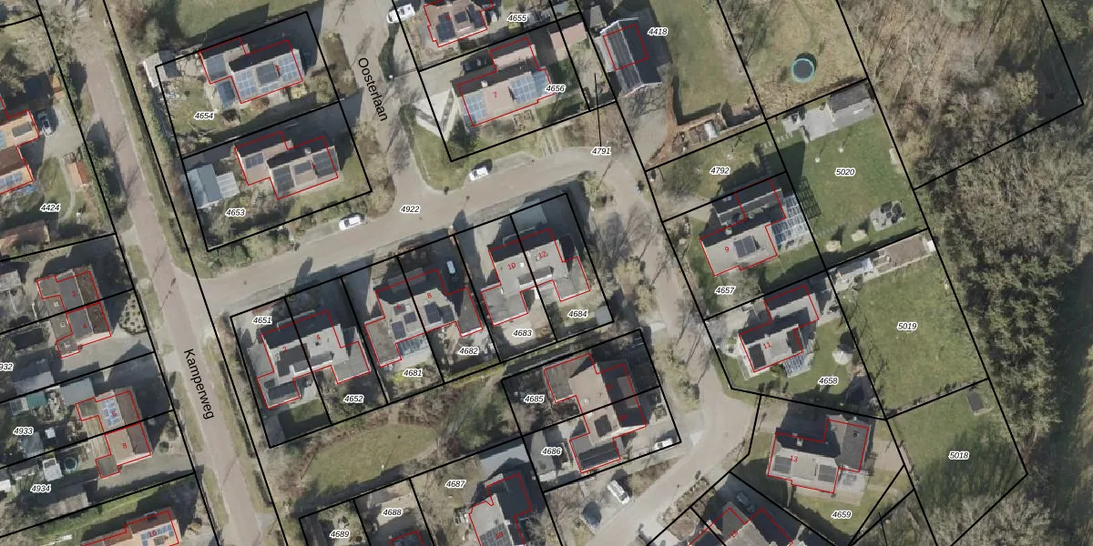 Gebruik de zoekbalk of klik op een perceel voor informatie over de adressen binnen dit perceel.