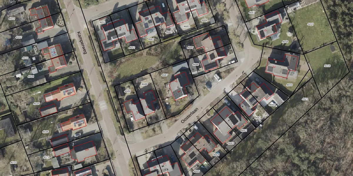 Gebruik de zoekbalk of klik op een perceel voor informatie over de adressen binnen dit perceel.
