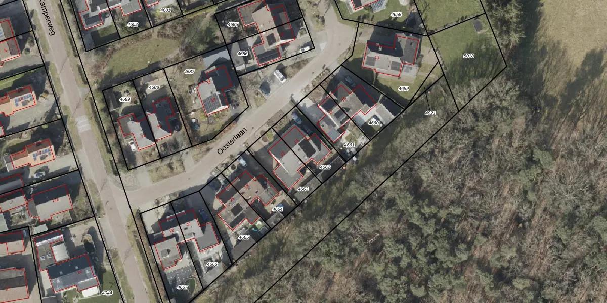 Oosterlaan 19 is gelegen op kadastraal perceel HVT03H4662. Deze kadastrale aanduiding is uniek en wordt gebruikt door het Kadaster om eigendomsrechten en andere zakelijke rechten vast te leggen. Het perceel maakt onderdeel uit van de kadastrale gemeente Havelte.
