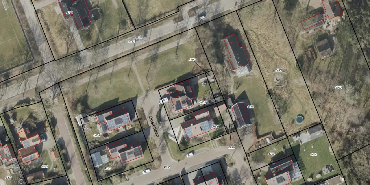 Oosterlaan 5 is gelegen op kadastraal perceel HVT03H4655. Deze kadastrale aanduiding is uniek en wordt gebruikt door het Kadaster om eigendomsrechten en andere zakelijke rechten vast te leggen. Het perceel maakt onderdeel uit van de kadastrale gemeente Havelte.