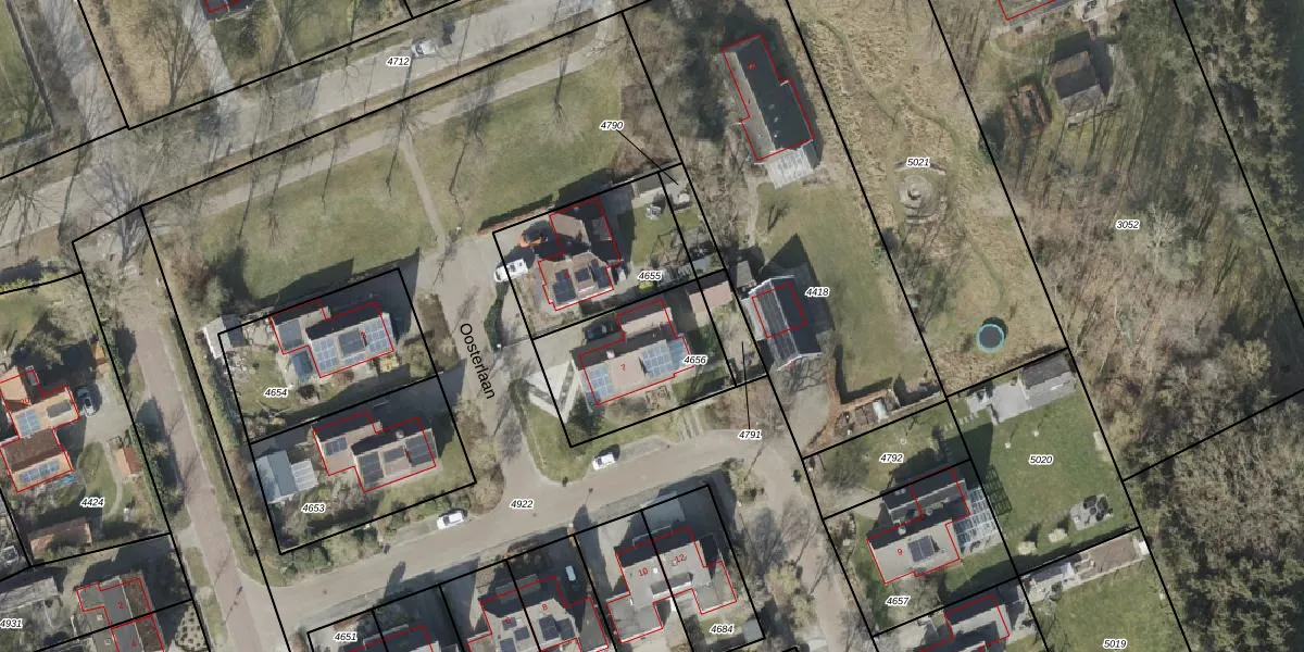 Oosterlaan 7 is gelegen op kadastraal perceel HVT03H4656. Deze kadastrale aanduiding is uniek en wordt gebruikt door het Kadaster om eigendomsrechten en andere zakelijke rechten vast te leggen. Het perceel maakt onderdeel uit van de kadastrale gemeente Havelte.
