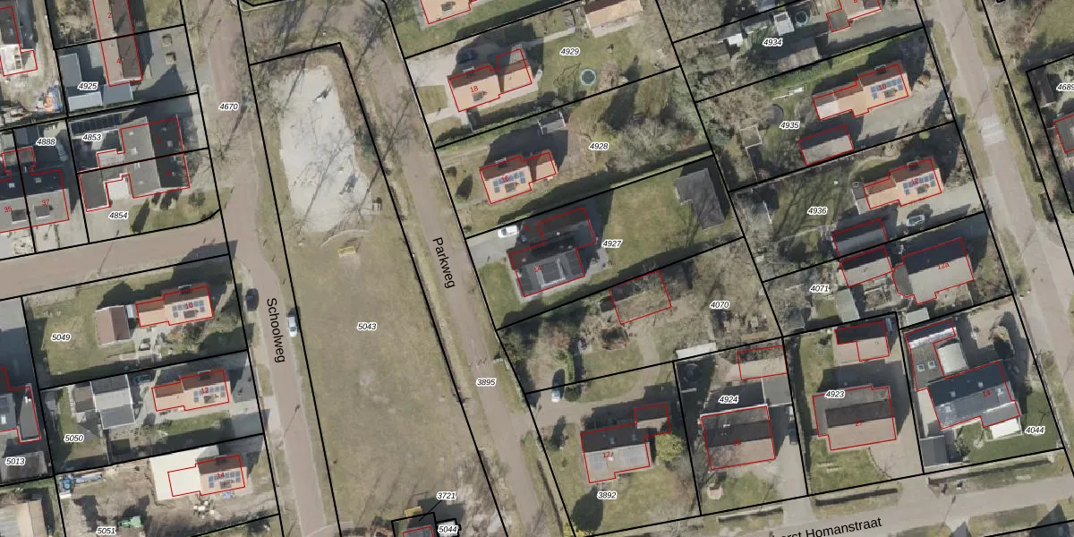 Gebruik de zoekbalk of klik op een perceel voor informatie over de adressen binnen dit perceel.