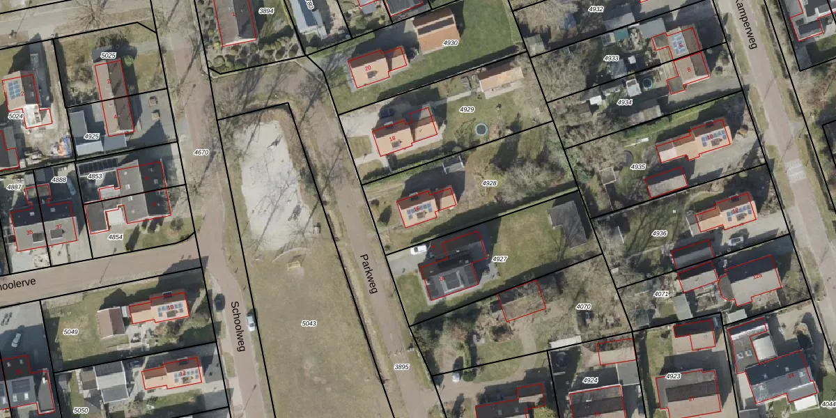 Het perceel waarop Parkweg 16 staat heeft een oppervlakte van 859 m². Dit is een groot perceel. De perceeloppervlakte wordt geregistreerd door het Kadaster. Gedetailleerde informatie over de maten van dit perceel kunt u vinden in het rapport Kadastrale kaart met maatvoering van Parkweg 16.