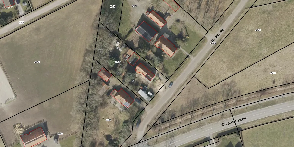 Ruiterweg 11 is gelegen op kadastraal perceel HVT03H3808. Deze kadastrale aanduiding is uniek en wordt gebruikt door het Kadaster om eigendomsrechten en andere zakelijke rechten vast te leggen. Het perceel maakt onderdeel uit van de kadastrale gemeente Havelte.