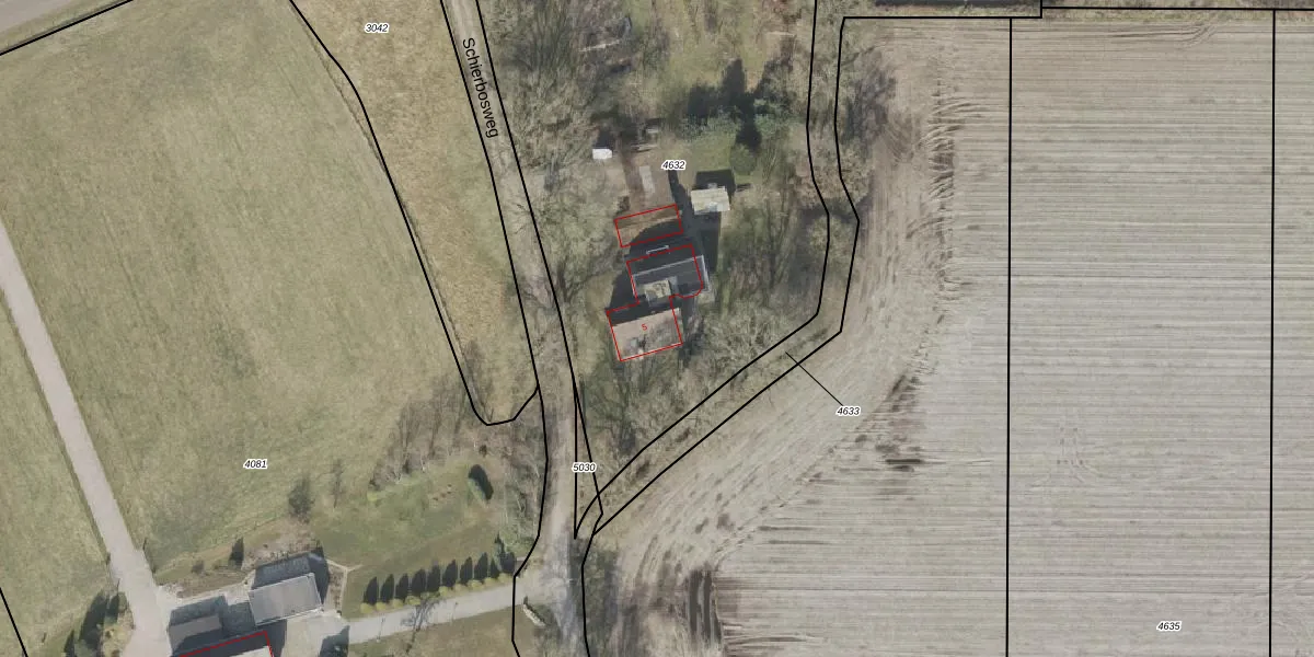 Het perceel waarop Schierbosweg 5 staat heeft een oppervlakte van 3200 m². Dit is een zeer groot perceel. De perceeloppervlakte wordt geregistreerd door het Kadaster. Gedetailleerde informatie over de maten van dit perceel kunt u vinden in het rapport Kadastrale kaart met maatvoering van Schierbosweg 5.