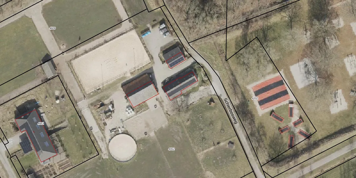 Het perceel waarop Schierbosweg 7 staat heeft een oppervlakte van 1,0 ha. Dit is een zeer groot perceel. De perceeloppervlakte wordt geregistreerd door het Kadaster. Gedetailleerde informatie over de maten van dit perceel kunt u vinden in het rapport Kadastrale kaart met maatvoering van Schierbosweg 7.