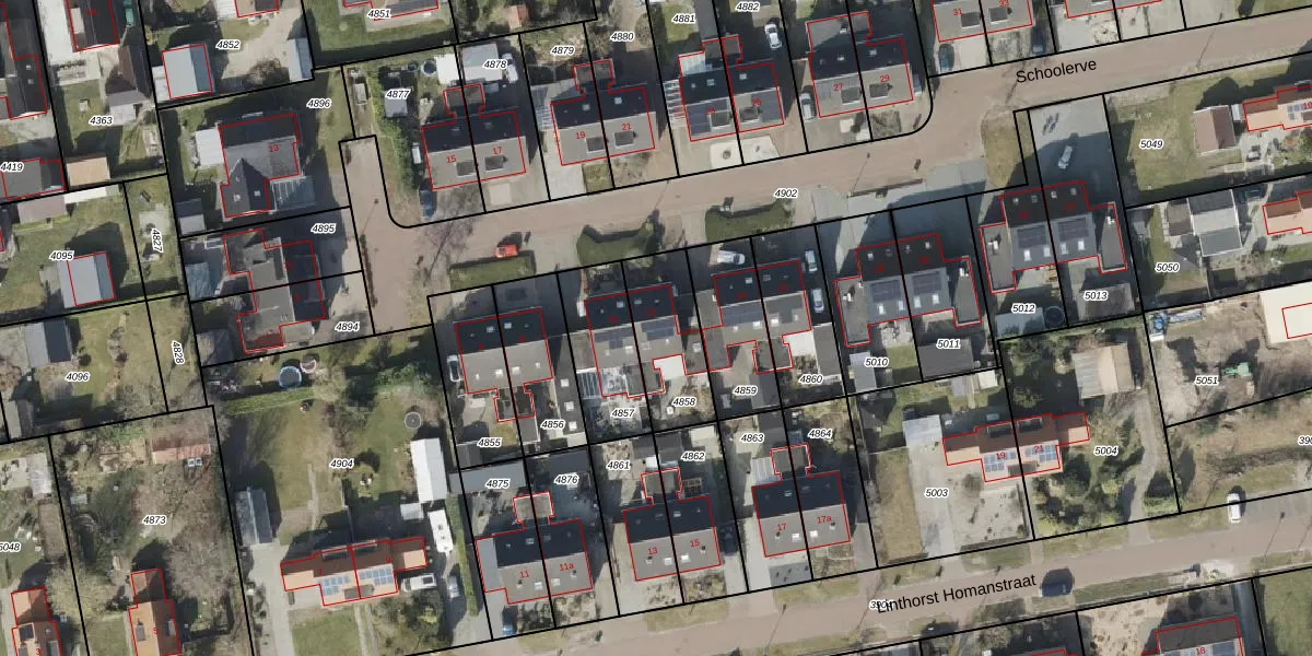 Schoolerve 12 is gelegen op kadastraal perceel HVT03H4858. Deze kadastrale aanduiding is uniek en wordt gebruikt door het Kadaster om eigendomsrechten en andere zakelijke rechten vast te leggen. Het perceel maakt onderdeel uit van de kadastrale gemeente Havelte.