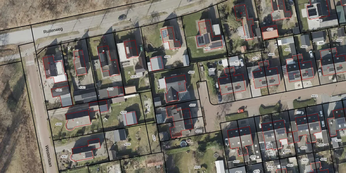 Gebruik de zoekbalk of klik op een perceel voor informatie over de adressen binnen dit perceel.