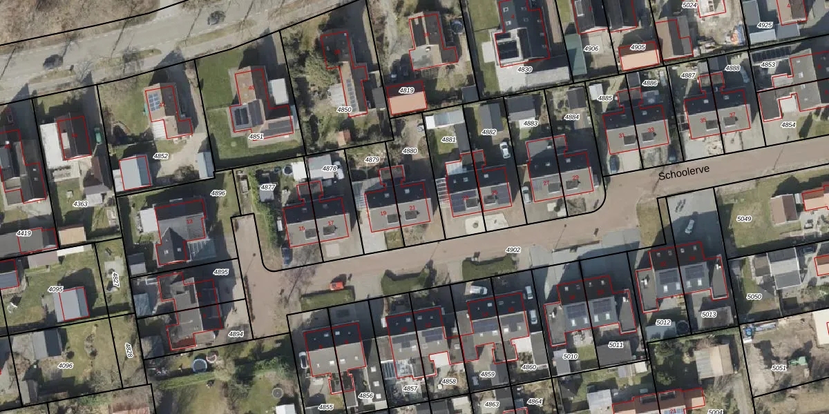 Het perceel waarop Schoolerve 21 staat heeft een oppervlakte van 301 m². Dit is een groot perceel. De perceeloppervlakte wordt geregistreerd door het Kadaster. Gedetailleerde informatie over de maten van dit perceel kunt u vinden in het rapport Kadastrale kaart met maatvoering van Schoolerve 21.