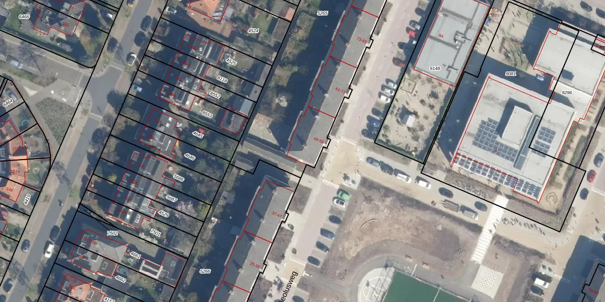 Het perceel waarop Aeolusweg 51 staat heeft een oppervlakte van 2780 m². Dit is een zeer groot perceel. De perceeloppervlakte wordt geregistreerd door het Kadaster. Gedetailleerde informatie over de maten van dit perceel kunt u vinden in het rapport Kadastrale kaart met maatvoering van Aeolusweg 51.
