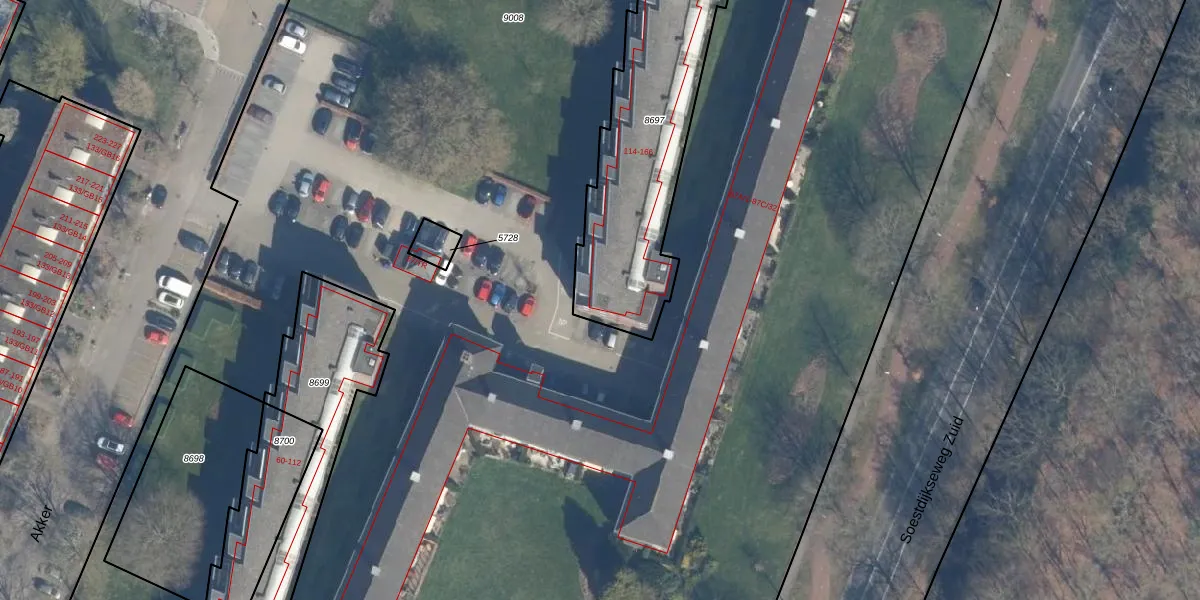 Het perceel waarop Akker 114 staat heeft een oppervlakte van 1042 m². Dit is een zeer groot perceel. De perceeloppervlakte wordt geregistreerd door het Kadaster. Gedetailleerde informatie over de maten van dit perceel kunt u vinden in het rapport Kadastrale kaart met maatvoering van Akker 114.