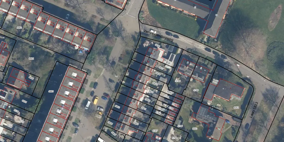 Gebruik de zoekbalk of klik op een perceel voor informatie over de adressen binnen dit perceel.