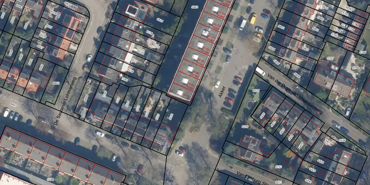 Het perceel waarop Akker 73 staat heeft een oppervlakte van 1676 m². Dit is een zeer groot perceel. De perceeloppervlakte wordt geregistreerd door het Kadaster. Gedetailleerde informatie over de maten van dit perceel kunt u vinden in het rapport Kadastrale kaart met maatvoering van Akker 73.