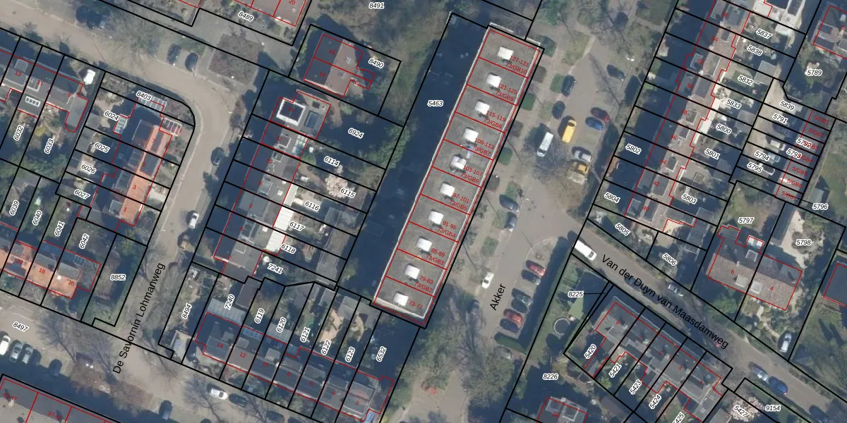 Het perceel waarop Akker 95 staat heeft een oppervlakte van 1676 m². Dit is een zeer groot perceel. De perceeloppervlakte wordt geregistreerd door het Kadaster. Gedetailleerde informatie over de maten van dit perceel kunt u vinden in het rapport Kadastrale kaart met maatvoering van Akker 95.