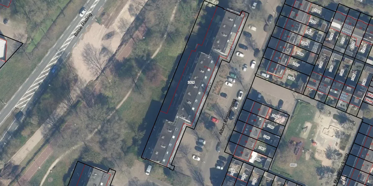 Het perceel waarop Albert Einsteinweg 101 staat heeft een oppervlakte van 1916 m². Dit is een zeer groot perceel. De perceeloppervlakte wordt geregistreerd door het Kadaster. Gedetailleerde informatie over de maten van dit perceel kunt u vinden in het rapport Kadastrale kaart met maatvoering van Albert Einsteinweg 101.