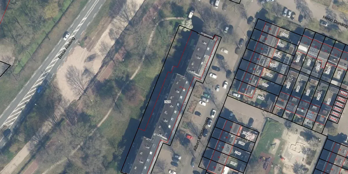 Albert Einsteinweg 107 is gelegen op kadastraal perceel BIL01D7824. Deze kadastrale aanduiding is uniek en wordt gebruikt door het Kadaster om eigendomsrechten en andere zakelijke rechten vast te leggen. Het perceel maakt onderdeel uit van de kadastrale gemeente De Bilt.