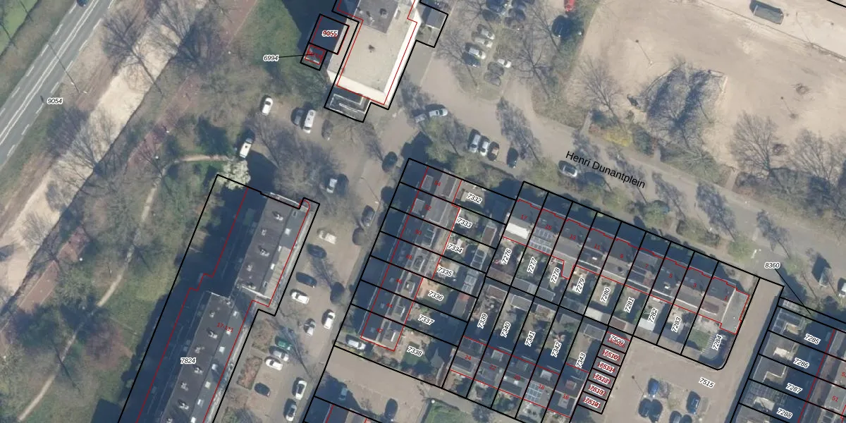 Gebruik de zoekbalk of klik op een perceel voor informatie over de adressen binnen dit perceel.