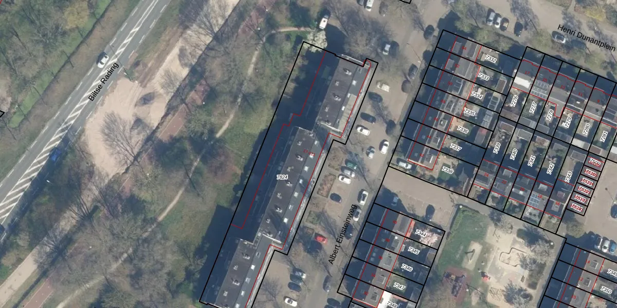 Albert Einsteinweg 75 is gelegen op kadastraal perceel BIL01D7824. Deze kadastrale aanduiding is uniek en wordt gebruikt door het Kadaster om eigendomsrechten en andere zakelijke rechten vast te leggen. Het perceel maakt onderdeel uit van de kadastrale gemeente De Bilt.