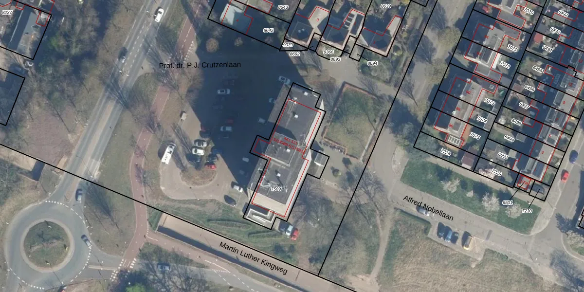Het perceel waarop Alfred Nobellaan 489 staat heeft een oppervlakte van 756 m². Dit is een groot perceel. De perceeloppervlakte wordt geregistreerd door het Kadaster. Gedetailleerde informatie over de maten van dit perceel kunt u vinden in het rapport Kadastrale kaart met maatvoering van Alfred Nobellaan 489.
