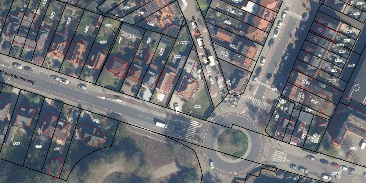 Gebruik de zoekbalk of klik op een perceel voor informatie over de adressen binnen dit perceel.