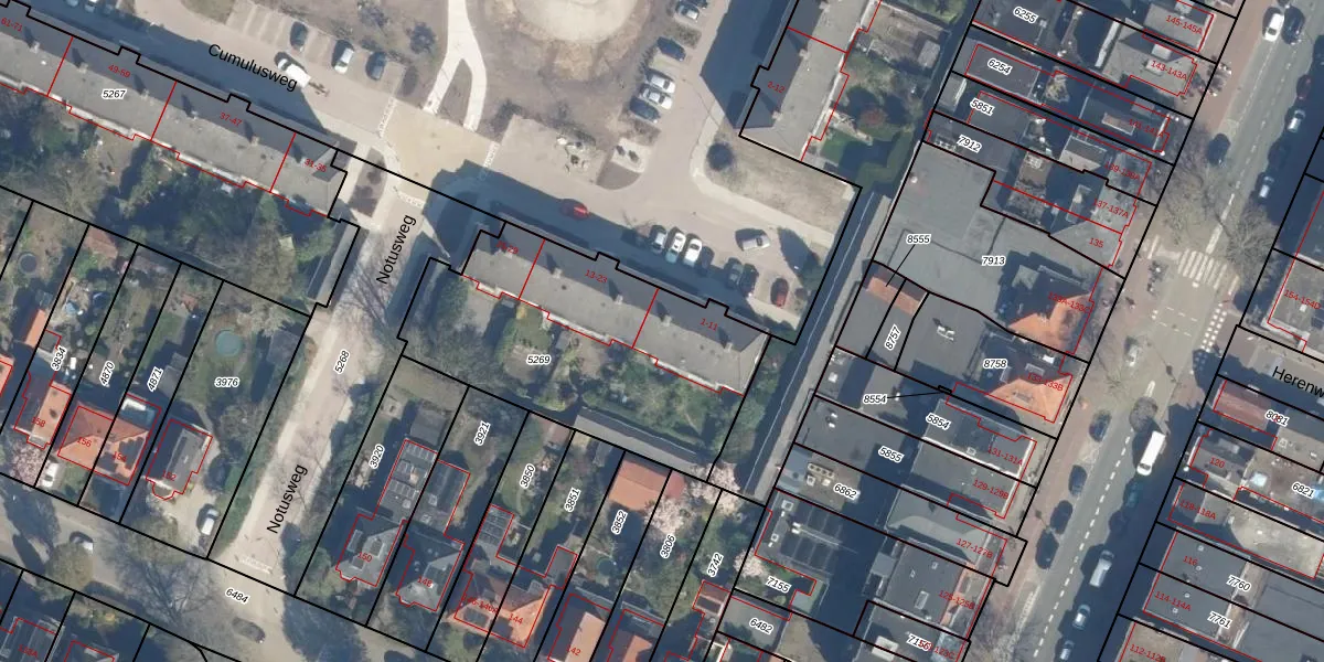 Het perceel waarop Cumulusweg 11 staat heeft een oppervlakte van 1217 m². Dit is een zeer groot perceel. De perceeloppervlakte wordt geregistreerd door het Kadaster. Gedetailleerde informatie over de maten van dit perceel kunt u vinden in het rapport Kadastrale kaart met maatvoering van Cumulusweg 11.