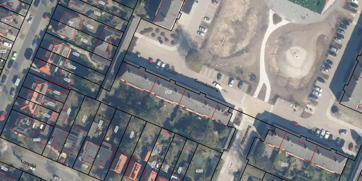 Het perceel waarop Cumulusweg 49 staat heeft een oppervlakte van 1811 m². Dit is een zeer groot perceel. De perceeloppervlakte wordt geregistreerd door het Kadaster. Gedetailleerde informatie over de maten van dit perceel kunt u vinden in het rapport Kadastrale kaart met maatvoering van Cumulusweg 49.