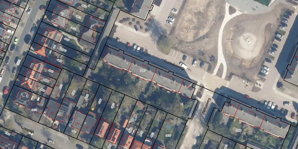 Het perceel waarop Cumulusweg 51 staat heeft een oppervlakte van 1811 m². Dit is een zeer groot perceel. De perceeloppervlakte wordt geregistreerd door het Kadaster. Gedetailleerde informatie over de maten van dit perceel kunt u vinden in het rapport Kadastrale kaart met maatvoering van Cumulusweg 51.