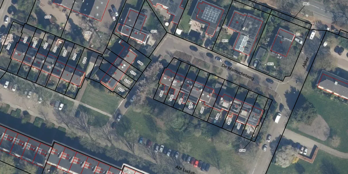 Gebruik de zoekbalk of klik op een perceel voor informatie over de adressen binnen dit perceel.