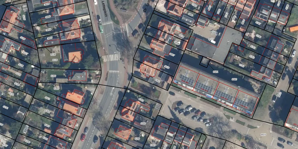 Het perceel waarop Dr. Letteplein 4 staat heeft een oppervlakte van 303 m². Dit is een groot perceel. De perceeloppervlakte wordt geregistreerd door het Kadaster. Gedetailleerde informatie over de maten van dit perceel kunt u vinden in het rapport Kadastrale kaart met maatvoering van Dr. Letteplein 4.