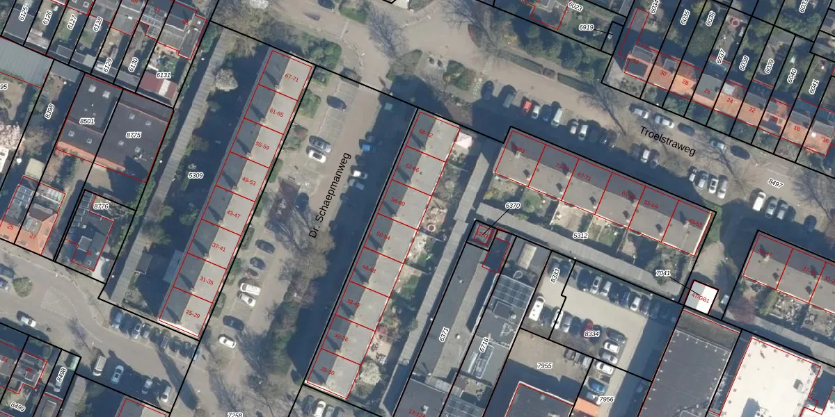 Het perceel waarop Dr. Schaepmanweg 56 staat heeft een oppervlakte van 2905 m². Dit is een zeer groot perceel. De perceeloppervlakte wordt geregistreerd door het Kadaster. Gedetailleerde informatie over de maten van dit perceel kunt u vinden in het rapport Kadastrale kaart met maatvoering van Dr. Schaepmanweg 56.