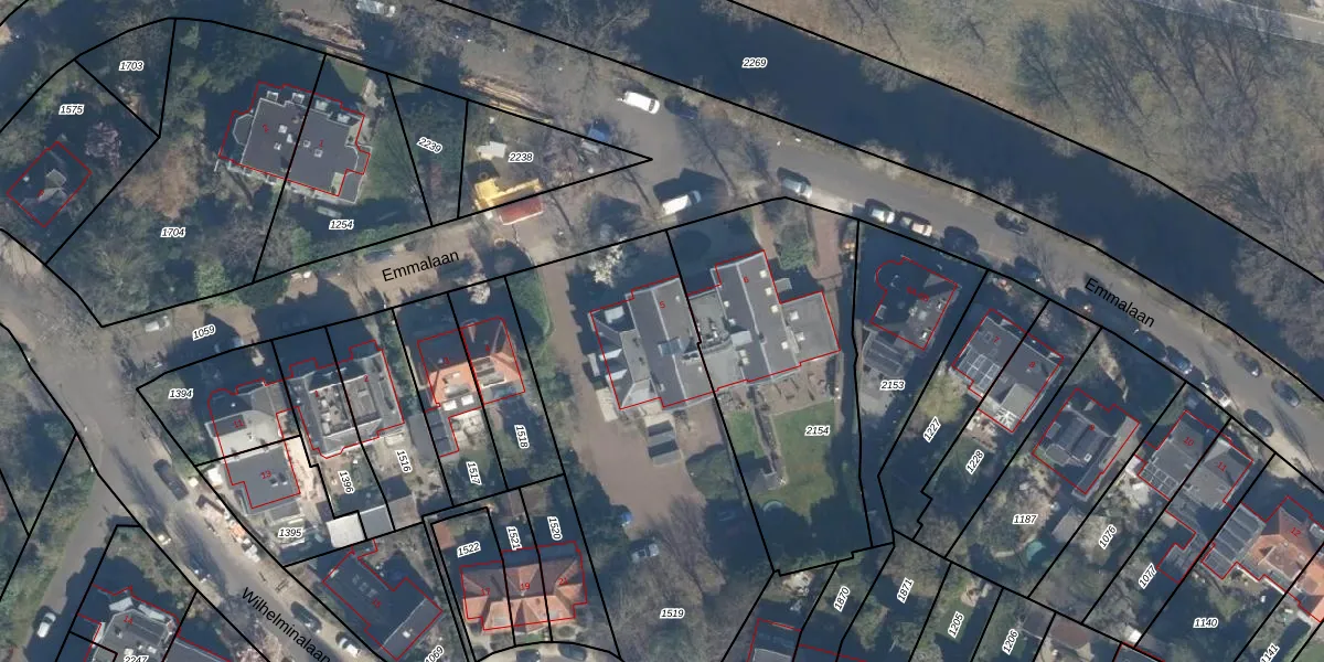 Het perceel waarop Emmalaan 5 staat heeft een oppervlakte van 1655 m². Dit is een zeer groot perceel. De perceeloppervlakte wordt geregistreerd door het Kadaster. Gedetailleerde informatie over de maten van dit perceel kunt u vinden in het rapport Kadastrale kaart met maatvoering van Emmalaan 5.