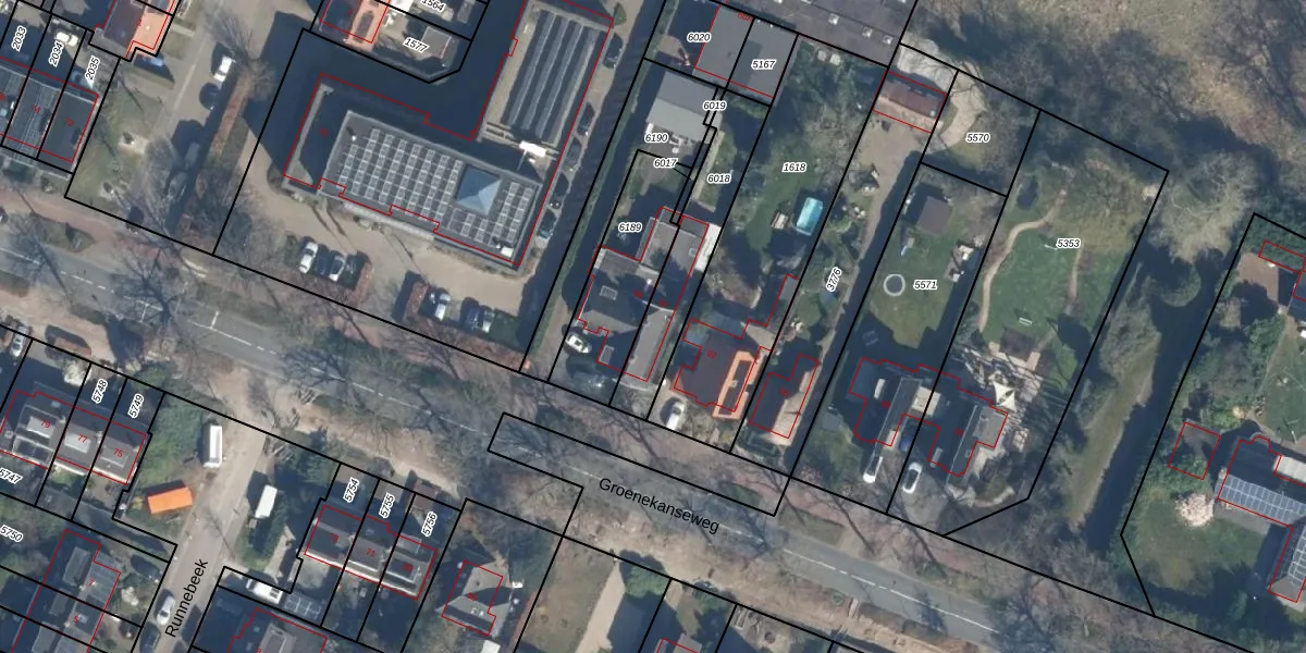 Het perceel waarop Groenekanseweg 64 staat heeft een oppervlakte van 345 m². Dit is een groot perceel. De perceeloppervlakte wordt geregistreerd door het Kadaster. Gedetailleerde informatie over de maten van dit perceel kunt u vinden in het rapport Kadastrale kaart met maatvoering van Groenekanseweg 64.